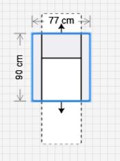 Breite: 77 cm, Tiefe 90 cm, Höhe: 120 cm.